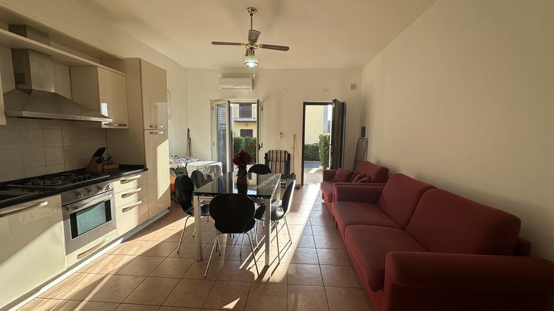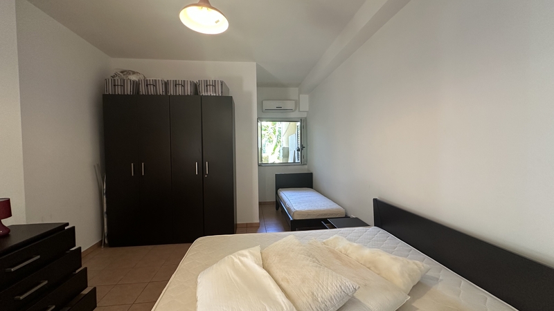 Mieszkanie składa się z przestronnego salonu z aneksem kuchennym, sypialni, w której wygodnie przenocują 3 osoby, łazienki oraz tarasu z małym ogródkiem. To właśnie tutaj najlepiej smakuje poranna kawa, a wieczorem kieliszek wina przy zachodzie słońca. Całość dopełnia dostęp do wspólnego basenu, idealnego na relaks i orzeźwienie w gorące, południowe dni.