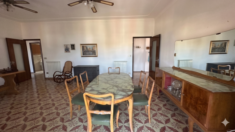 Samo mieszkanie robi ogromne wrażenie. To aż osiem pokoi i dwie łazienki, co daje mnóstwo możliwości aranżacyjnych — zarówno dla dużej rodziny, jak i dla inwestora. Z połowy pomieszczeń rozciąga się widok na morze, a prawdziwą perełką tej nieruchomości jest gigantyczny taras ( 30m2) z panoramicznym widokiem na Morze Tyrreńskie i góry. To przestrzeń, która każdego dnia daje poczucie włoskiego stylu życia — poranna kawa w słońcu, kolacje przy zachodzie, odpoczynek z widokiem, którego nie da się podrobić.